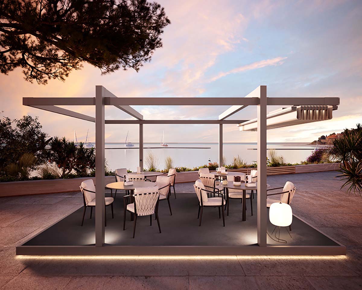 Sun and light rain are no obstacle to the outdoor life offered by the modular Phoenix pergola from Pratic, conceived to bring a sense of wellbeing in all weathers. Its pared-down appearance, with profiles just 10 x 15 cm, and flat, retractable PVC roof notably reduce architectural impact without affecting the function: either in the […]